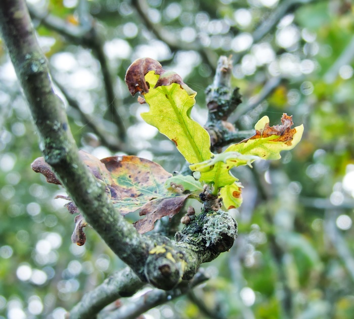 And recently, I’ve noticed early signs of the oak leaves developing these same brown patches. Typically, the oak is the last to lose their leaves in Autumn, often the only green deciduous trees holding their colour as we move into winter. But now, in October, and even though the autumn colours are late this year, very late, in fact, the oaks are showing signs of the same disease.