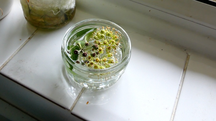 So, I spoke to the flowers to find out if it would be okay to make an essence without the sun. The flowers told me they’re happy with sitting in the water for a day or two, because the sun its still there, and its ultra violet light, although reduced, is still everywhere. As long as we allow enough time for the flower’s essence to permeate the water molecules.